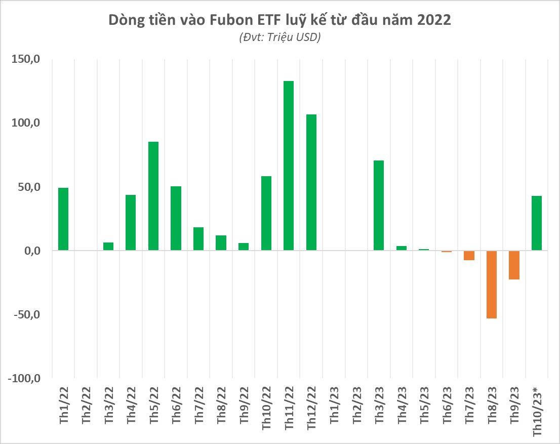 Theo tin từ Fubon FTSE Vietnam ETF, trong phiên giao dịch 30/10, quỹ đã phát hành ròng 15 triệu chứng chỉ quỹ, tương ứng khoảng 5,1 triệu USD. Lượng phát hành của Fubon ETF tương ứng khoảng 126 tỷ đồng và toàn bộ đã được giải ngân mua cổ phiếu Việt Nam.