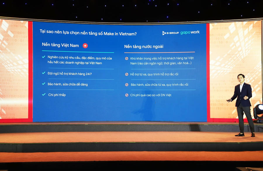 Xuất phát từ giải quyết vấn đề của doanh nghiệp mình, G-Group đã phát triển và cho ra mắt nền tảng giao tiếp Make in Vietnam GapoWork. Nền tảng này giúp nhân sự trong doanh nghiệp kết nối với nhau dễ dàng, gia tăng hiệu suất làm việc, tiết kiệm thời gian và chi phí, thông tin truyền tải tức thì dù ở bất kỳ đâu.