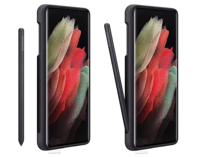 Những hình ảnh và tin đồn gần đây cho biết Galaxy S21 Ultra sẽ hỗ trợ bút cảm ứng S Pen nhưng không có khe cắm bút. Samsung được cho sẽ bán S Pen cho S21 Ultra dưới dạng phụ kiện rời, kèm ốp lưng với khe đựng bút. Ảnh: WinFuture.