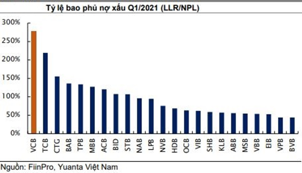 Hiện tại, VCB là ngân hàng thận trọng nhất nhờ vào khoản trích lập dự phòng cao nhằm hạn chế sự suy giảm của chất lượng tài sản. Do đó, nhà băng này sẽ linh hoạt hơn các ngân hàng khác trong việc điều chỉnh khoản trích lập dự phòng trong tương lai để có thể hỗ trợ lợi nhuận mà không làm ảnh hưởng đến chất lượng tài sản.