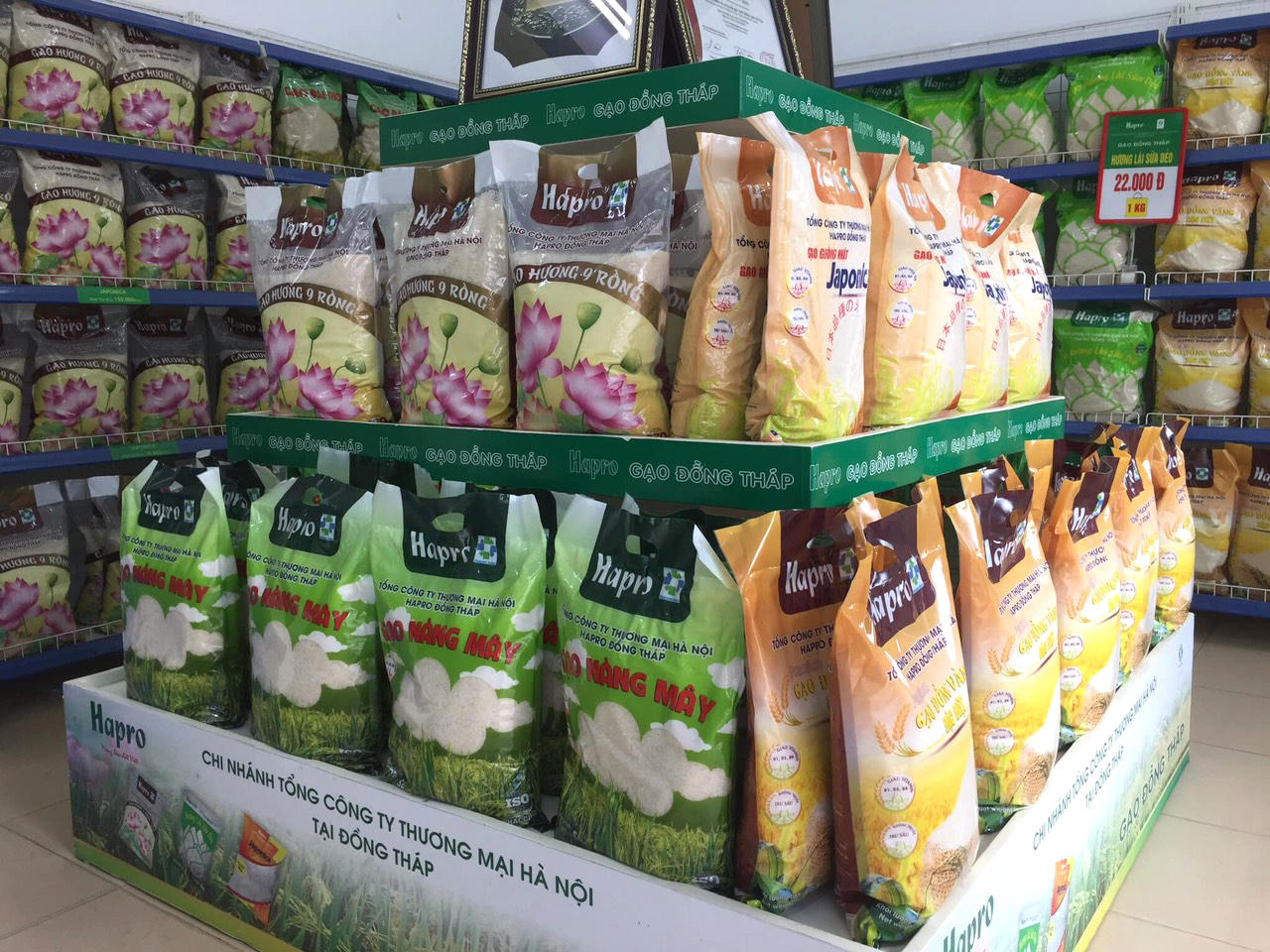 Hiện, Hapro đã nghiên cứu và triển khai đưa vào hệ thống kinh doanh 07 sản phẩm gạo Đồng Tháp chất lượng cao phục vụ người tiêu dùng trong nước gồm: Gạo ST25; Gạo Đồng vàng; Gạo Hương lài sữa dẻo; Gạo giống Nhật Japonica; Gạo Hương 9 rồng; Gạo Nàng mây; Gạo Đài thơm. Sản phẩm Gạo Hapro Đồng Tháp được phân phối, bán buôn và bán lẻ tại Hà Nội và các tỉnh thành thông qua hệ thống chuỗi siêu thị BRGMart, cửa hàng Haprofood/BRGMart, Hapromart; Fuji Mart, Big C... Tất cả các sản phẩm đã được đón nhận và dần đáp ứng thị hiếu, chinh phục người tiêu dùng.