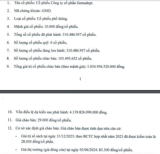 Với giá chào bán 29.000 đồng/cổ phần, cổ đông của GMD được mua thấp hơn tới gần 64% thị giá cổ phiếu GMD chốt ngày 18/7/2024 tại 79.900 đồng/cổ phiếu.