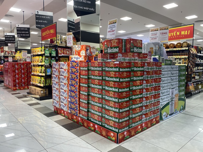 Tại siêu thị Aeon Mall (Hà Đông, Hà Nội), giá bia đang được giảm giá, khuyến mãi. Cụ thể, bia Heineken giảm từ 455.000 đồng/thùng còn 449.000 đồng/thùng, bia Tiger và Tiger Crystal có giá lần lượt là 359.000 đồng/thùng và 389.000 đồng/thùng, bia Huda có giá 249.000 đồng/thùng.