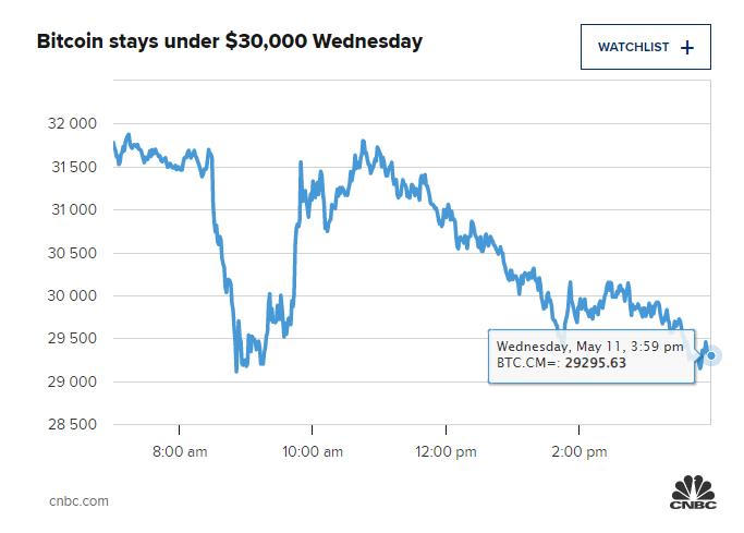 Đây là lần thứ 2 trong tuần này, bitcoin giao dịch dưới ngưỡng 29.000 USD. Các nhà phân tích cho rằng 30.000 USD là mốc quan trọng với đồng tiền điện tử lớn nhất về vốn hóa này.