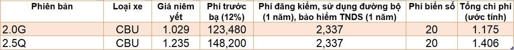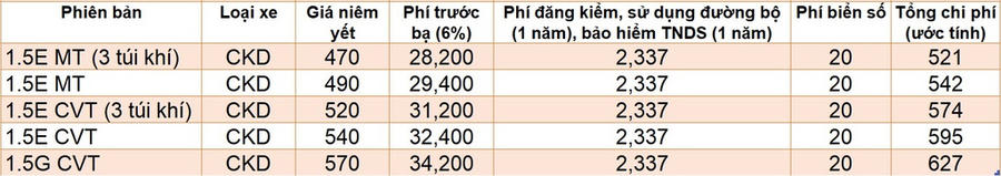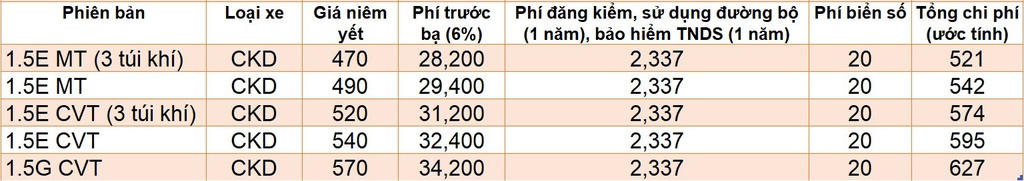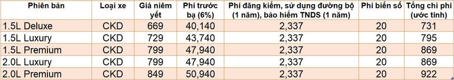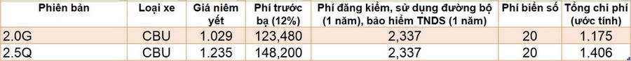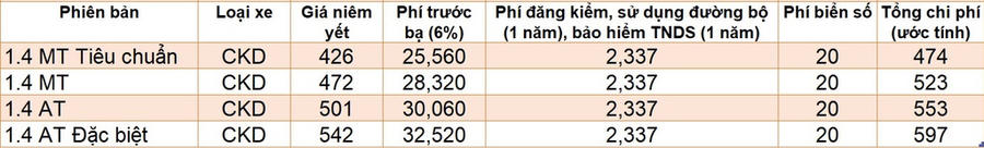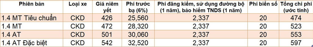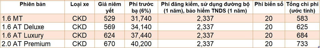 Giá lăn bánh các xe trong bài viết được tính tại Hà Nội, địa phương có tổng chi phí lăn bánh ôtô cao nhất. Các khoản phí khác tính theo đăng ký ôtô cá nhân.