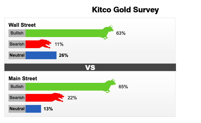 Với 905 người tham gia thăm dò trực tuyến ở phố Main, có 588 người (tương đương 65%) tin tưởng giá vàng sẽ tăng; 199 người (tương đương 22%) dự đoán vàng sẽ giảm, trong khi 118 người còn lại (tương đương 13%) cho rằng giá đi ngang.