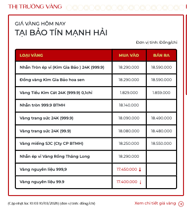 Cùng lúc đó, giá vàng tại Bảo tín Mạnh Hải niêm yết giao dịch tại 182,9 - 185,9 triệu đồng/lượng.