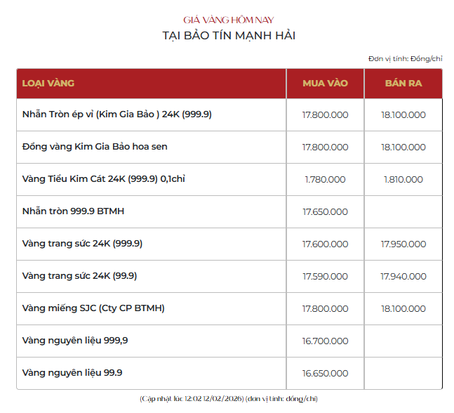 Cùng lúc đó, giá vàng miếng SJC tại Bảo tín Mạnh Hải niêm yết tại 178 - 181 triệu đồng/lượng.
