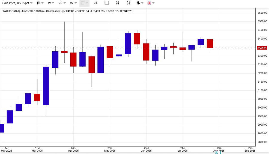 Thị trường đang chờ loạt dữ liệu kinh tế Mỹ để xác định hướng đi tiếp theo, trong bối cảnh kỳ vọng Cục Dự trữ Liên bang Mỹ (Fed) cắt giảm lãi suất vẫn chiếm ưu thế. Hiện mỗi ounce vàng thế giới niêm yết giao dịch tại vùng giá 3.350 USD/ounce, giảm 16,07 USD/ounce so với phiên trước.