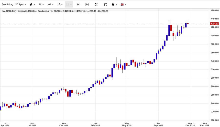 Hiện, giá vàng giao ngay tăng 0,2% lên 4.309,82 USD/ounce, sau khi có thời điểm tăng hơn 1% trong phiên. Giá vàng giao sau cũng tăng 0,2% lên 4.335,2 USD/ounce.