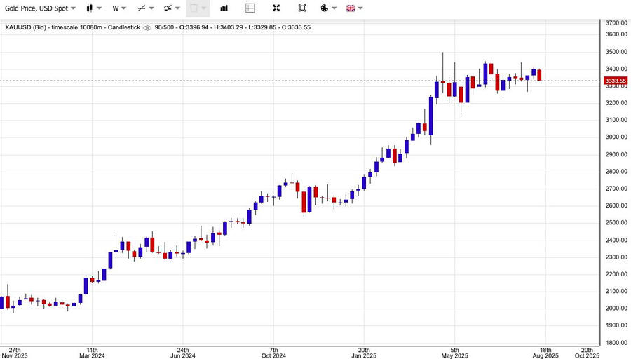 “Dù giá vàng tương đối ổn định vào thứ Sáu, nhưng những biến động mới có thể xuất hiện tùy thuộc vào kết quả hội nghị thượng đỉnh giữa ông Trump và ông Putin diễn ra tại Alaska,” ông Lukman Otunuga, chuyên gia phân tích cấp cao tại FXTM, nhận định.