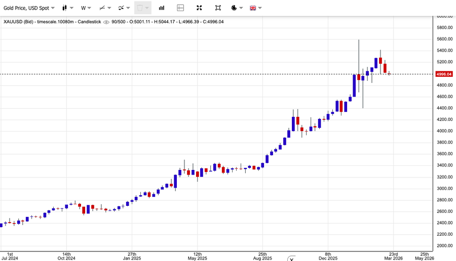 Giá vàng ngày 18/3: Vàng thế giới mất mốc 5.000 USD/ounce, vàng miếng SJC ổn định trở lại