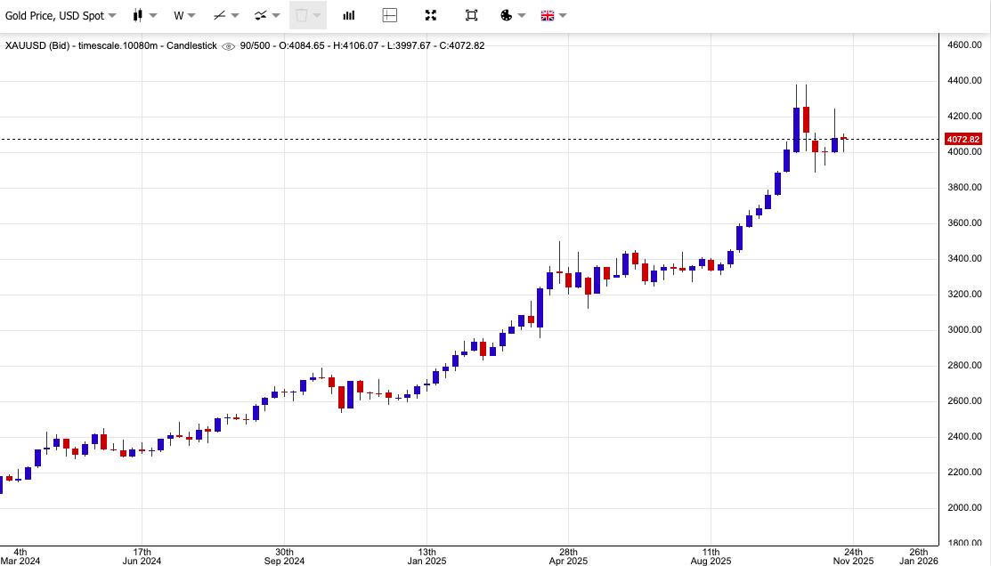 Trong phiên giao dịch sáng ngày 19/11, thị trường tiếp tục phục hồi. Giá vàng giao ngay tăng 0,2% lên 4.075 USD, theo kitco, và giá vàng giao tháng 12 tăng 0,21% lên 4.075 USD.