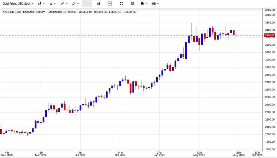 Giá vàng thế giới hôm nay tương đối ổn định khi giới đầu tư tập trung vào cuộc gặp giữa Tổng thống Mỹ Donald Trump với các lãnh đạo Ukraine và châu Âu, cùng hội nghị thường niên của Cục Dự trữ Liên bang Mỹ (Fed) tại Jackson Hole dự kiến diễn ra trong tuần này.