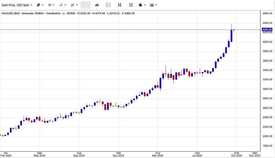 "Chưa từng có một chuỗi tăng kéo dài 10 tuần liên tiếp nào," ông Alex Kuptsikevich, Giám đốc chiến lược thị trường tại FxPro, nhận định. Trong phân tích mới nhất, ông Kuptsikevich cho biết vàng đang bị mua quá mức và ông đang thiên về xu hướng giảm giá.