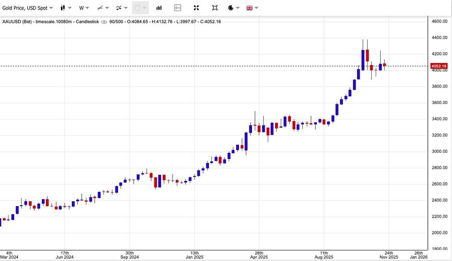Vàng đã tăng tới 55% kể từ đầu năm, đạt mức cao kỷ lục 4.381 USD/ounce vào ngày 20/10.Dù đang trong giai đoạn điều chỉnh, ngân hàng UBS mới đây đã nâng dự báo giá vàng giữa năm 2026 thêm 300 USD lên 4.500 USD/ounce, dựa trên kỳ vọng Fed sẽ giảm lãi suất, rủi ro địa chính trị kéo dài và nhu cầu mạnh mẽ từ các ngân hàng trung ương cũng như các quỹ ETF.