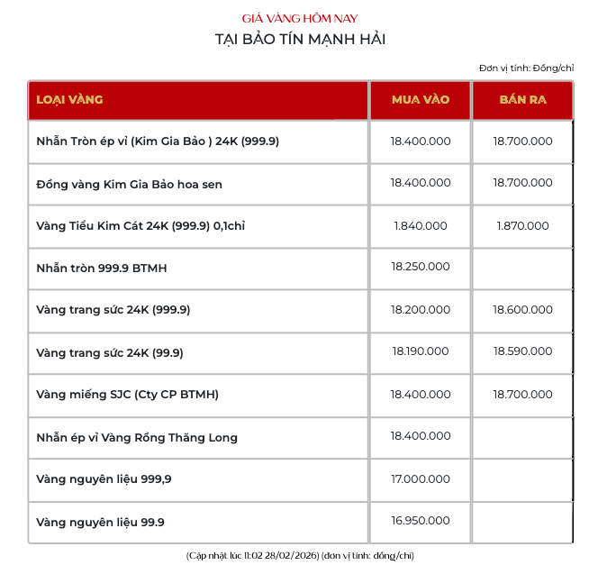 Giá vàng ngày 28/2: Vàng thế giới tăng cao nhất gần 1 tháng, vàng miếng SJC và vàng nhẫn lên 187 triệu/lượng