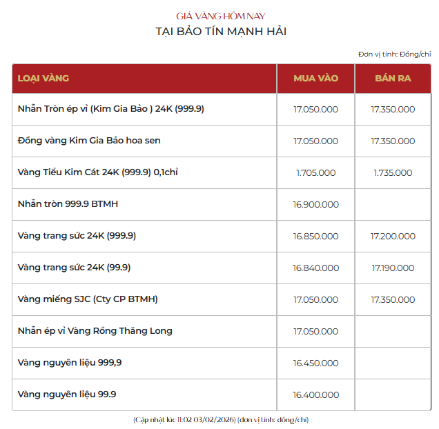Cùng lúc đó, giá vàng SJC tại Bảo tín Mạnh Hải giảm mạnh, niêm yết giao dịch tại 170,5 - 173,5 triệu đồng/lượng.