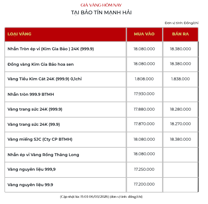 Sau khi phục hồi, giá vàng miếng SJC sáng 6/3 lại quay đầu giảm tại tất cả các doanh nghiệp lớn.