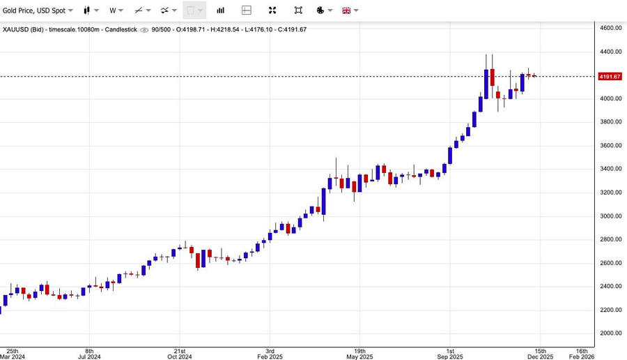 Hiện giá vàng giao ngay giảm 0,2% xuống 4.189,5 USD/ounce và giá vàng giao tháng 2 giảm 0,6% xuống 4.218 USD/ounce.