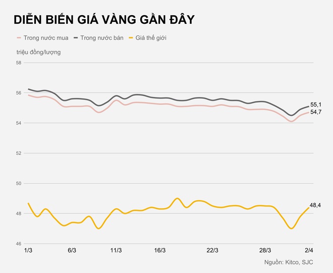 Hiện tại, một ounce vàng thế giới quy đổi ra tiền Việt hiện có giá 48,4 triệu đồng/lượng, vẫn thấp hơn giá các doanh nghiệp trong nước đưa ra khoảng 6,7 triệu đồng.