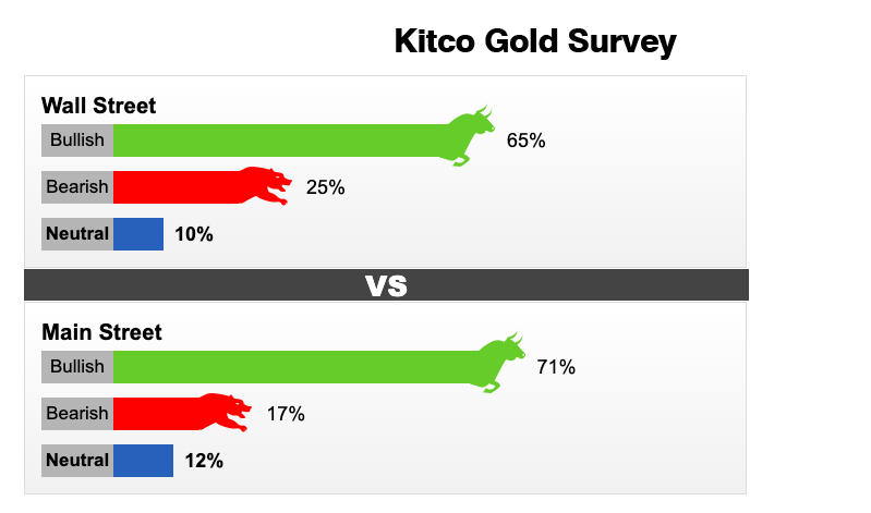 Tuần này, 20 nhà phân tích Phố Wall đã tham gia Khảo sát vàng của Kitco News. Trong số những người tham gia, có 13 nhà phân tích, tương đương 65%, lạc quan về vàng trong thời gian tới. Đồng thời, 5 nhà phân tích (tương đương 25%) cho rằng, giá sẽ giảm trong tuần tới và hai nhà phân tích, tương đương 10%, cho rằng giá đang giao dịch đi ngang.