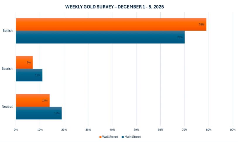 Trong khi đó, 260 phiếu bầu đã được bỏ trong cuộc thăm dò trực tuyến của Kitco, với tâm lý lạc quan của các nhà đầu tư Main Street cũng được củng cố sau khi vàng vượt khỏi ngưỡng hỗ trợ 4.000 USD/ounce.