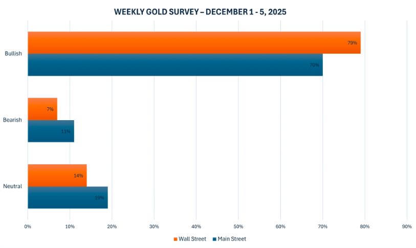 Cuộc khảo sát vàng hàng tuần mới nhất của Kitco News cho thấy phần lớn các nhà đầu tư Phố Wall quay lại với xu hướng tăng giá đối với triển vọng ngắn hạn của kim loại quý này, trong khi các nhà đầu tư Phố Main cũng củng cố xu hướng tăng giá của mình.