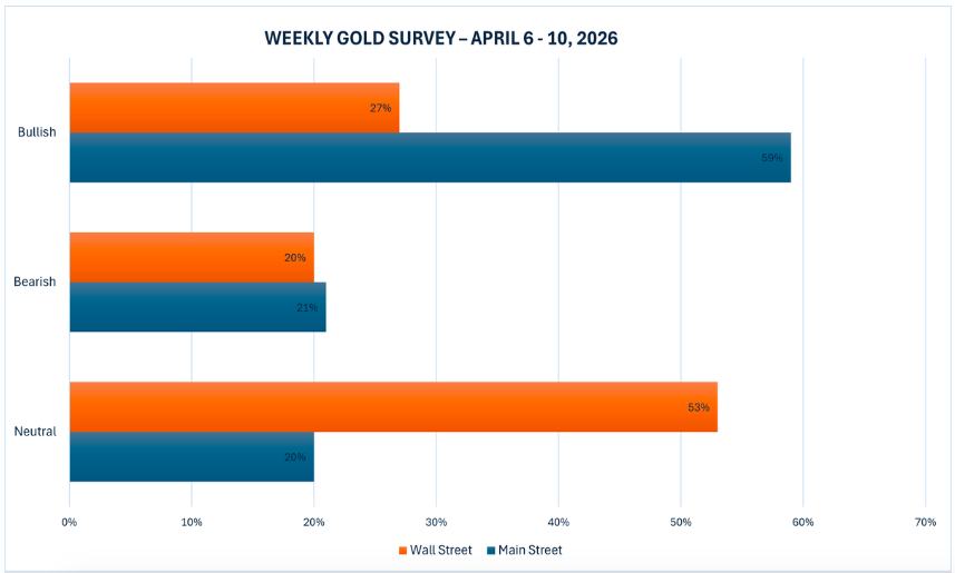 Khảo sát giá vàng hàng tuần mới nhất của Kitco News cho thấy, các chuyên gia đang nghiêng về xu hướng đứng ngoài thị trường giữa các tín hiệu trái chiều của cuộc xung đột ở Trung Đông trong khi các nhà đầu tư cá nhân tỏ ra lạc quan hơn đôi chút sau những đợt tăng giá của vàng.