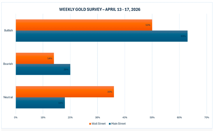 Khảo sát dự báo giá vàng tuần tới của Kitco News cho thấy cả Phố Wall và nhà đầu tư cá nhân đang sẵn sàng quay lại thị trường dù tâm lý thị trường chưa hoàn toàn ổn định.