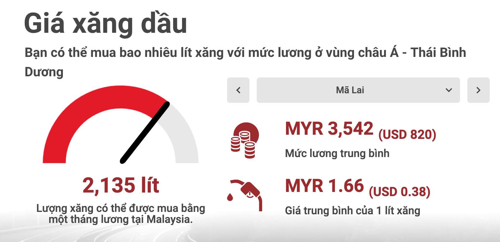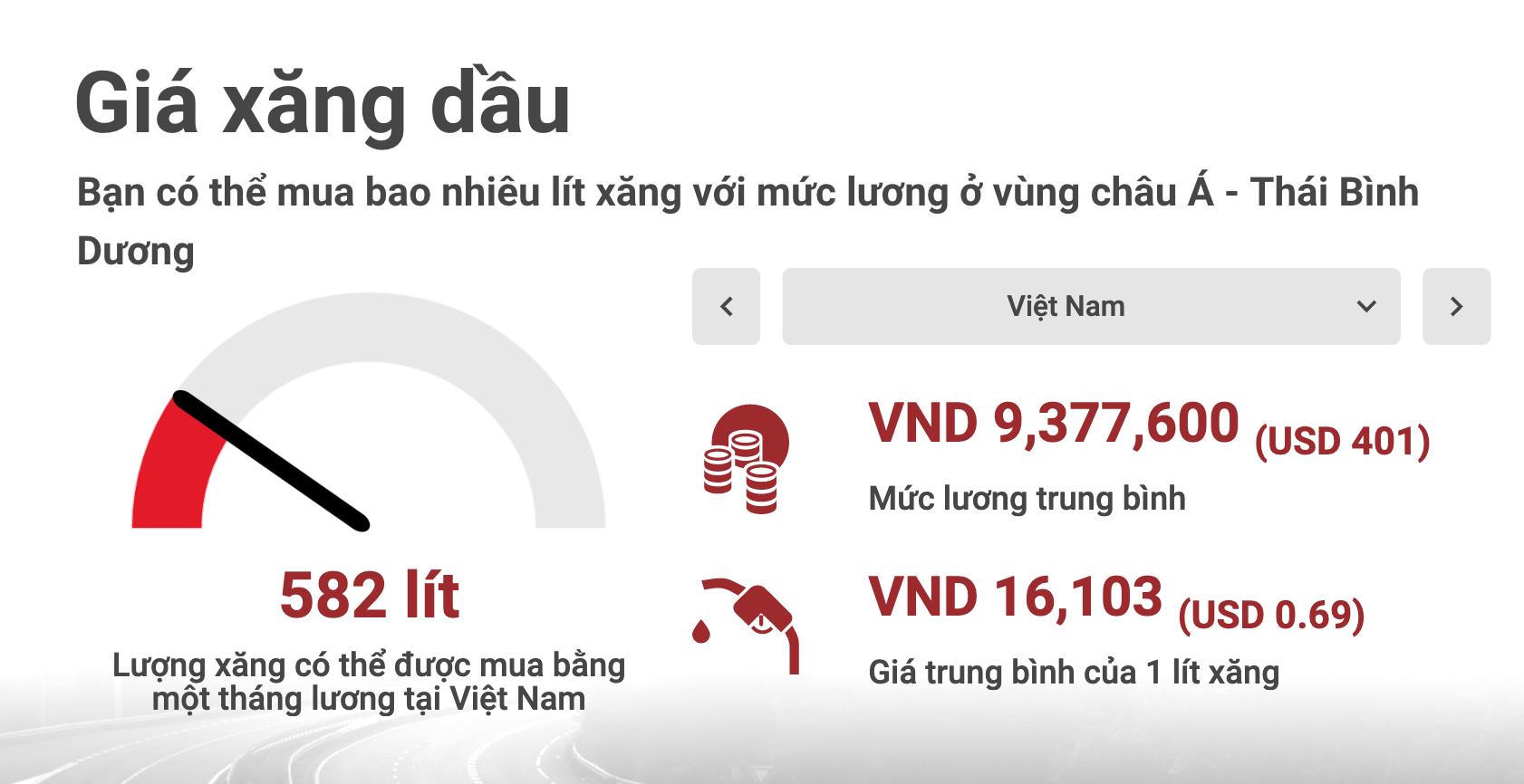 Giá xăng so với mức lương trung bình trong khu vực châu Á - Thái Bình Dương