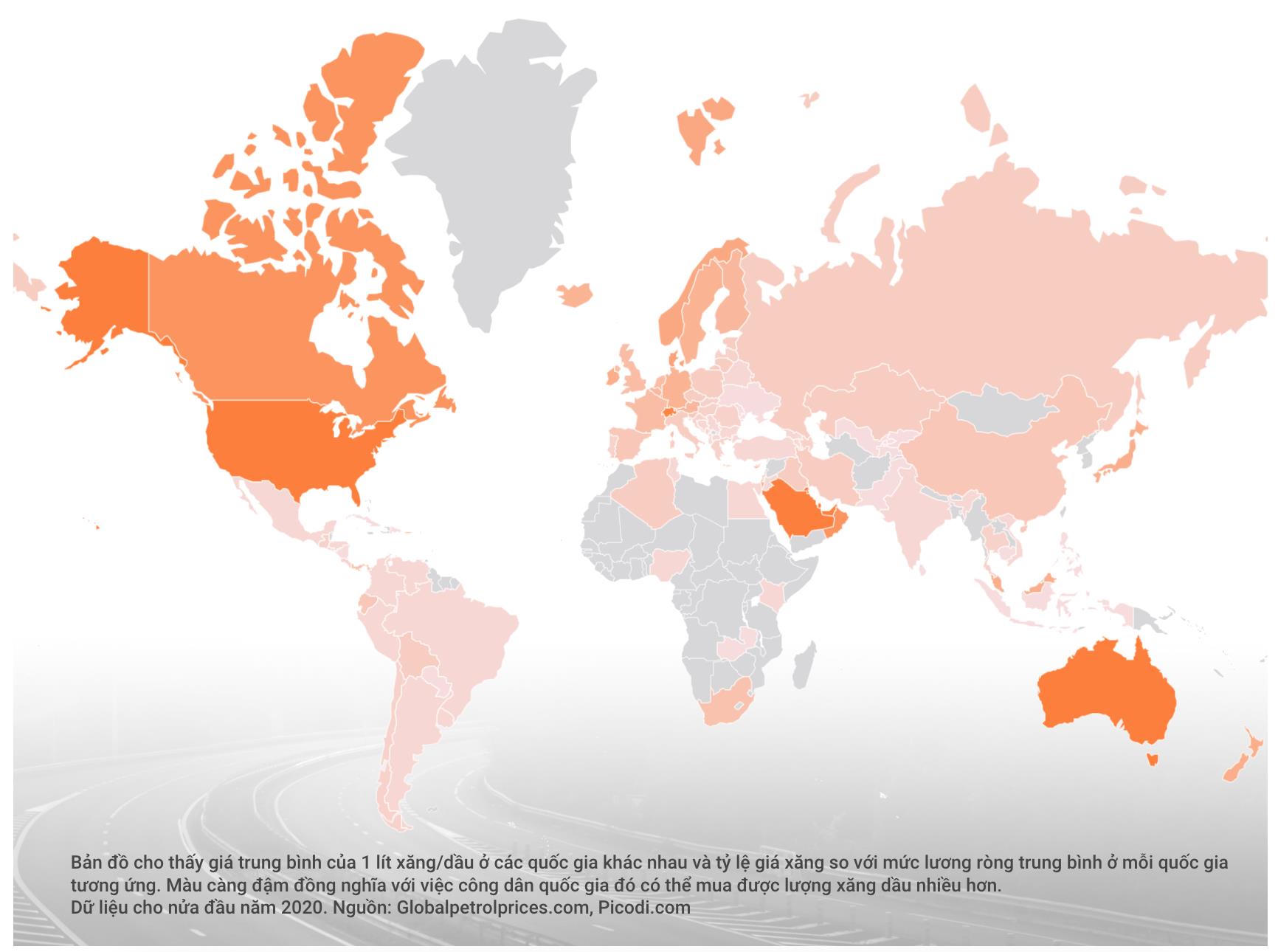 Giá xăng trên mức lương trung bình toàn thế giới