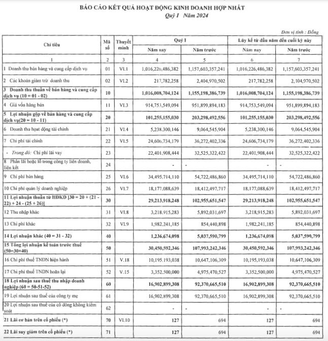 Giá vốn hàng bán giảm nhẹ 4% về mức 914,7 tỷ đồng. Lợi nhuận gộp chỉ bằng 1/2 so với nửa kỳ năm ngoái.