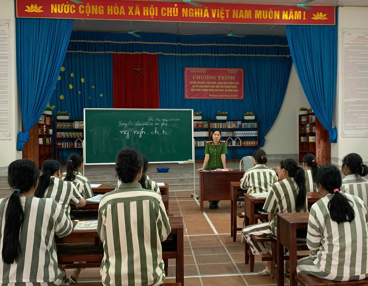 Chúng tôi từng theo chân Đại úy Ngô Thị Huyền Trang (cán bộ Trại giam Phú Sơn 4) – nữ quản giáo kiêm giáo viên lớp xóa mù chữ. Cô đứng lớp, giảng bài cho những học viên lớn tuổi hơn cả mình, phần nhiều chưa từng đi học một ngày nào. Mỗi ánh mắt sáng lên của phạm nhân khi viết được tên mình là một tia hy vọng len lỏi giữa chốn tưởng chừng khô cứng.