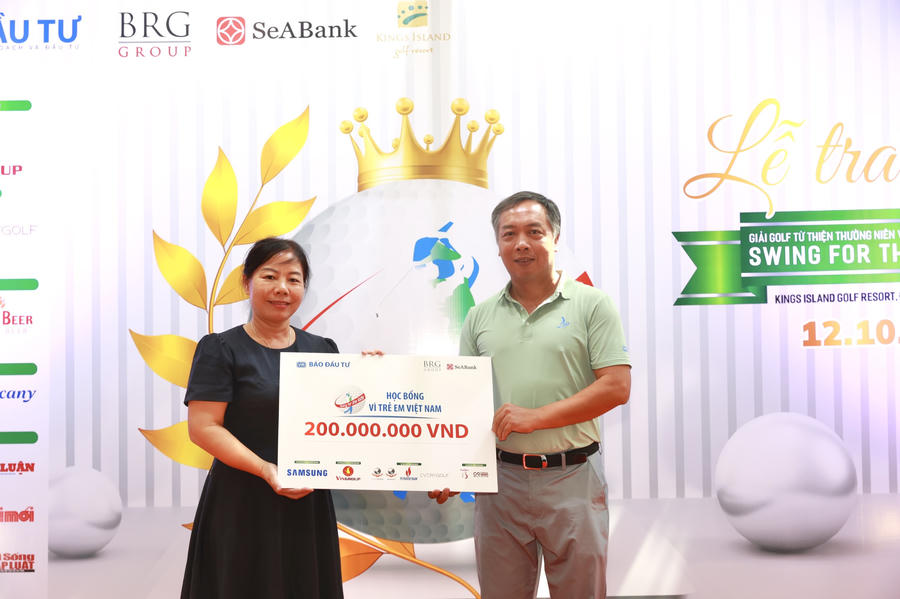 Không chỉ là một giải đấu đề cao tinh thần thể thao, giải Golf Từ thiện Thường niên Vì trẻ em Việt Nam lần thứ 17 – Swing for the Kids 2024 còn là nơi quy tụ của những tấm lòng hào hiệp và những trái tim nhân ái, với hành động thiết thực. Tại buổi Gala trao giải, Ban tổ chức đã trao 06 suất học bổng toàn phần năm 2024, trị giá 10 triệu đồng/suất cho 6 sinh viên của Đại học Giao thông Vận Tải và Học viện Chính sách và Phát triển. Bên cạnh đó, Ban tổ chức cùng chia sẻ khó khăn của các sinh viên bị ảnh hưởng bão lụt vừa qua với đại diện là 6 sinh viên. Cũng tại buổi lễ, Ban tổ chức đã trao 200 triệu đồng cho Quỹ Khuyến học Việt Nam.