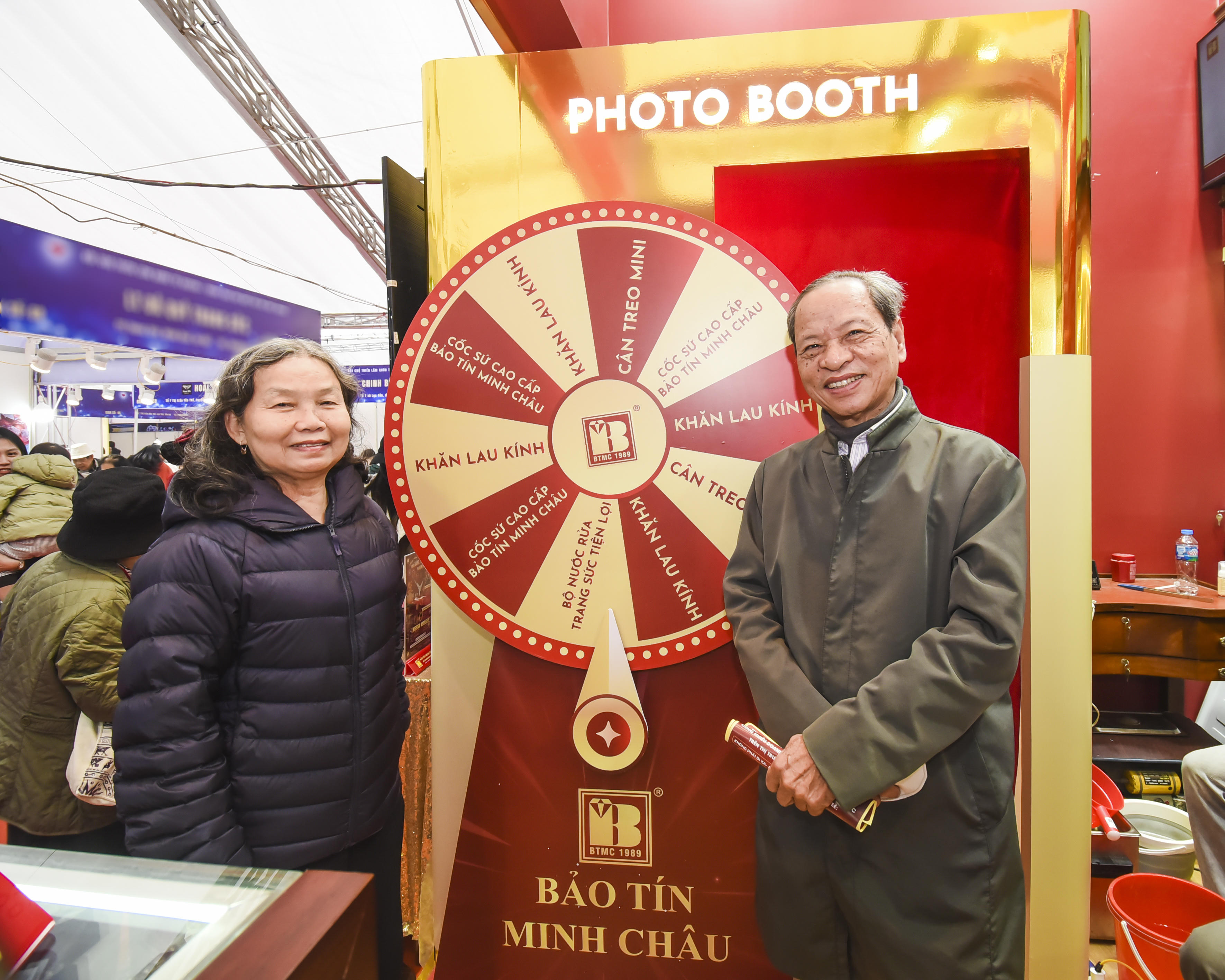 Khách hàng đến với gian hàng của BTMC còn có thể chụp ảnh kỷ niệm tại minibooth và nhận ngay một ảnh in miễn phí, đồng thời tham gia vòng quay may mắn để nhận quà khi quét mã QR Zalo OA hoặc chụp ảnh tại gian hàng, tạo nên không khí sôi động, nhộn nhịp suốt thời gian diễn ra sự kiện.