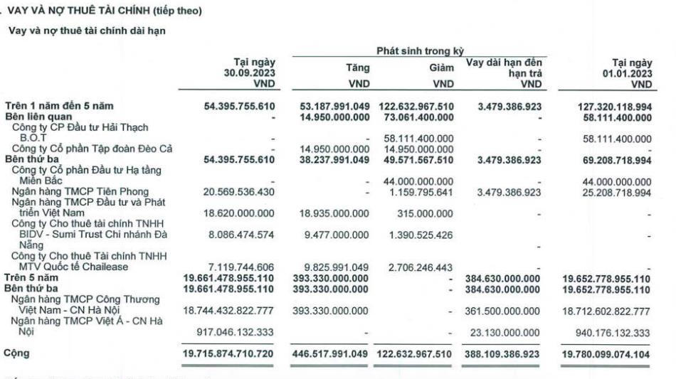 Đáng chú ý, dù giảm nhẹ so với đầu năm nhưng nợ vay dài hạn tại thời điểm cuối quý III của Công ty vẫn ghi nhận tại gần 19.715,8 tỷ đồng, bằng gần 50% quy mô tài sản của HHV.