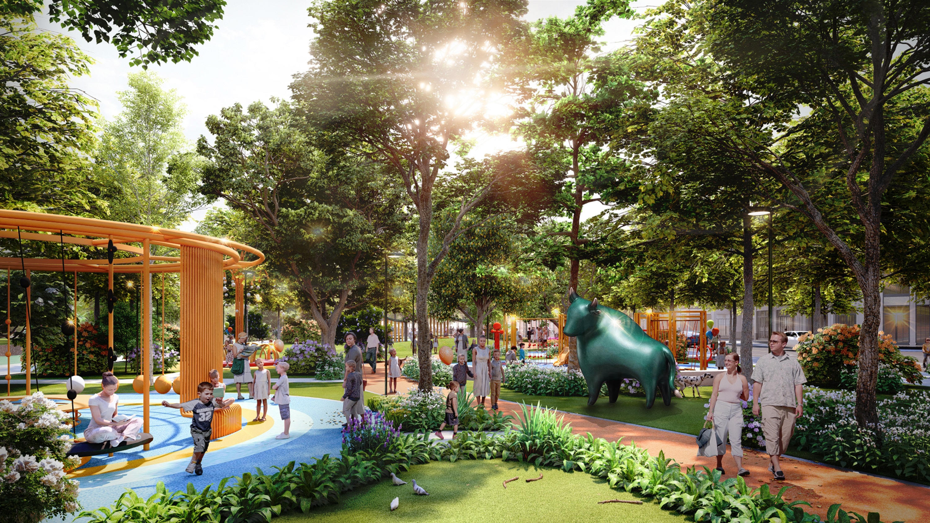 Không chỉ hưởng lợi từ 200ha cảnh quan cây xanh, mặt nước của toàn đô thị, cư dân tại phân khu Kim Tiền còn sở hữu hệ thống tiện ích nội khu đẳng cấp, gồm Tổ hợp thể thao với chòi nghỉ, sân chơi trẻ em, sân tập thể dục… các khu vườn cảnh quan gắn với lịch sử vùng đất “núi Đọi sông Châu” như vườn Đại Hoàng, vườn Điền Viên, vườn Kim Bảng…