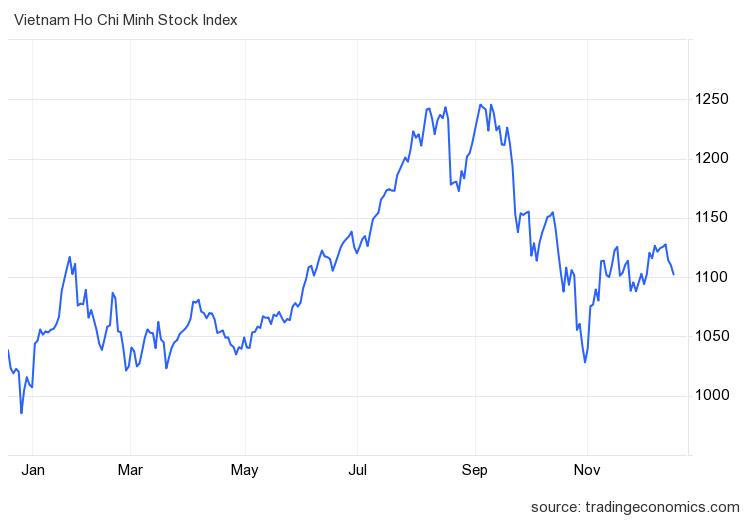Thứ tư, thiếu vắng một câu chuyện hay trong ngắn hạn. Nếu như kỳ vọng lớn cho chứng khoán toàn cầu là xu hướng hạ lãi suất thì các thị trường châu Á có vẻ như đã đi trước kỳ vọng này rồi. Việt Nam cũng đã hạ 4 lần và gần như khó có dự địa để hạ thêm nữa. Nền kinh tế khỏe hơn và nhiều câu chuyện hay hơn được quan sát thấy ở những đầu cầu lớn như Mỹ, Ấn Độ, châu Âu.