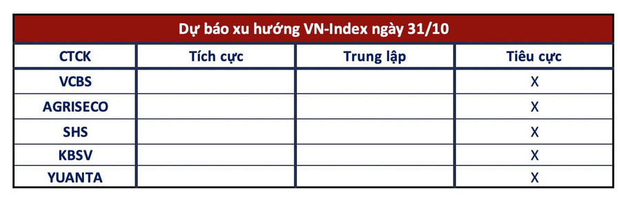 Thị trường có thể sẽ tiếp tục đà giảm trong phiên kế tiếp và vùng hỗ trợ cho chỉ số VN-Index kế tiếp là 1.000 – 1.020 điểm. Đồng thời, rủi ro ngắn hạn của thị trường chung vẫn ở mức cao, mặc dù vậy chúng tôi vẫn kỳ vọng vào vùng hỗ trợ 1.020 điểm của chỉ số VN-Index có thể thu hút lực cầu ngắn hạn tại vùng giá này. Ngoài ra, chỉ báo tâm lý tiếp tục giảm vào vùng bi quan quá mức, nhưng thị trường có thể sẽ chưa thể hình thành vùng đáy đang tín cậy và chủ yếu chỉ xuất hiện các nhịp hồi kỹ thuật ngắn hạn.