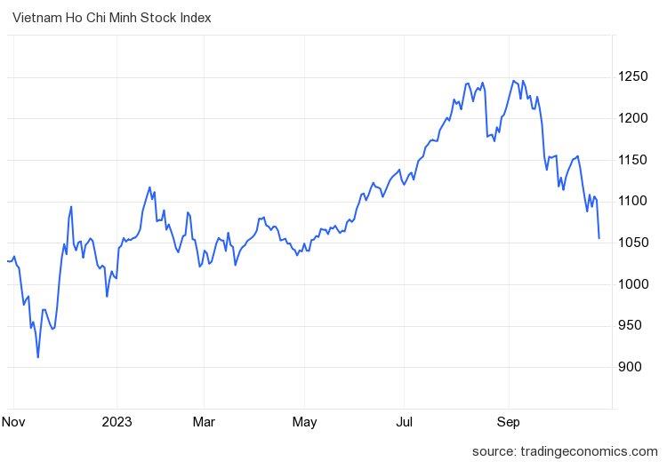 Đóng cửa phiên 26/10, VN-Index giảm 46,21 điểm (-4,19%) xuống 1.055,45 điểm; HNX-Index giảm 12,03 điểm xuống 214,98 điểm. Thanh khoản trên HoSE tăng mạnh với giá trị khớp lệnh đạt gần 22.200 tỷ đồng.