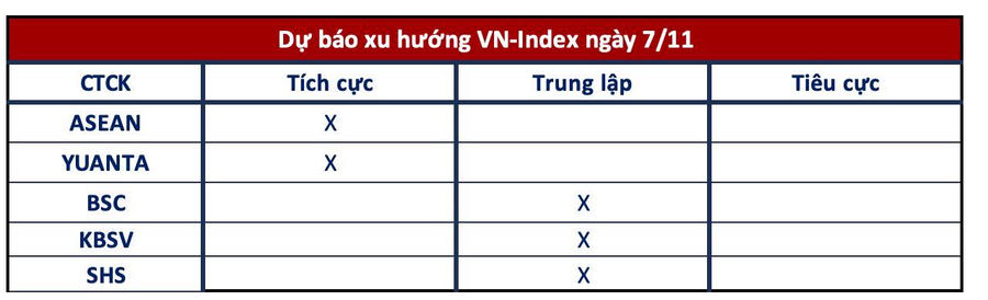 Thị trường hôm nay phản ứng tích cực với thông tin liên quan đến bầu cử tổng thống Hoa Kỳ. Trong những phiên tới, VN-Index có thể tiếp tục đà hồi phục lên vùng 1.270 – 1.275, tuy nhiên, thanh khoản vẫn còn thấp, thị trường tiềm ẩn rủi ro đến từ áp lực chốt lời.