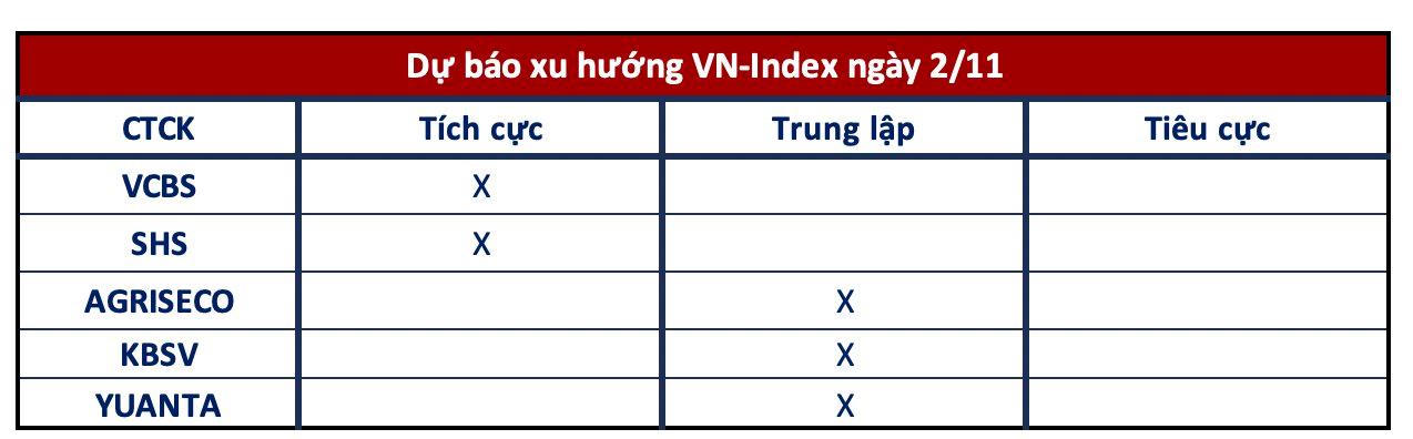 Thị trường chứng khoán trải qua một nhịp điều chỉnh giằng co trong phiên trước khi dần hồi phục và đảo chiều tăng điểm về cuối phiên. Kết thúc phiên giao dịch đầu tiên của tháng 11, VN-Index đóng cửa tại 1.040 điểm, tăng 11 điểm so với phiên hôm trước.