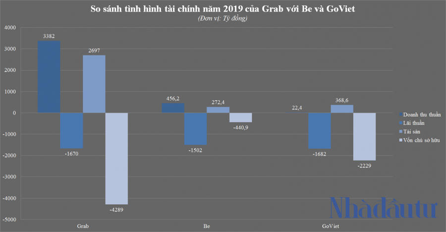Ở chiều ngược lại, lỗ thuần của Grab ngày càng lớn. Tính riêng năm 2019, Grab lỗ đến 1.670 tỷ đồng, lỗ tăng 88,7% so với năm 2018, và cũng là con số lỗ lớn nhất của Grab giai đoạn 2016 – 2019.