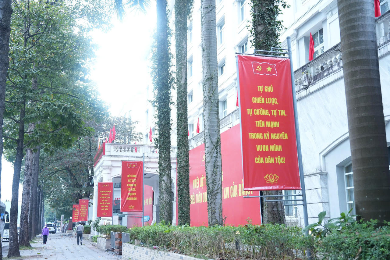 Những ngày này, Hà Nội khoác lên mình diện mạo rực rỡ với cờ đỏ sao vàng, băng rôn, pano, áp phích. Không khí hào hứng, phấn khởi lan tỏa trong từng góc phố, tuyến đường thể hiện niềm tin, niềm tự hào và kỳ vọng của Nhân dân Thủ đô hướng về Đại hội đại biểu toàn quốc lần thứ XIV của Đảng.