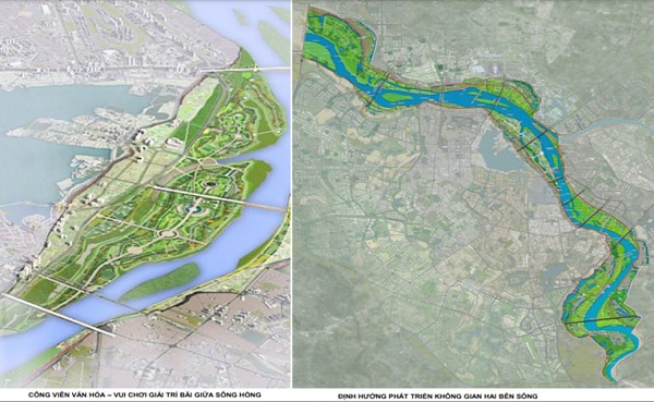 Tuy nhiên, theo bản đồ quy hoạch, phương án đề xuất xây dựng 2 tuyến đường ven sông được kết hợp chức năng là đê ngăn lũ với cao trình mặt đường +12,0 (trên mức lũ báo động 3) tương tự việc hình thành đê bối mới là không phù hợp.