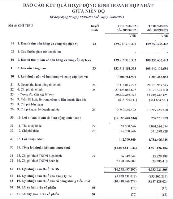 Về bức tranh tài chính, theo báo cáo kinh doanh hợp nhất giữa niên độ (tính từ 1/4/2023 - 30/9/2023), HID ghi nhận doanh thu thuần đạt 139,9 tỷ đồng tăng 30 tỷ đồng so với cùng kỳ năm ngoái.