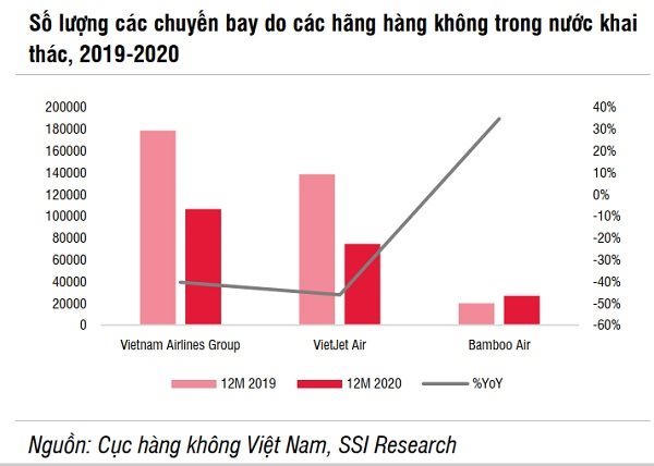 "Trong năm 2021, chiến lược của các hãng hàng không có thể sẽ tập trung tối đa hóa thị trường nội địa bằng cách mở thêm đường bay, cung cấp nhiều dịch vụ giá trị trên chuyến bay và tạo ra nhiều sự lựa chọn về giá hơn cho hành khách", bộ phận nghiên cứu của SSI (SSI Research) lý giải.