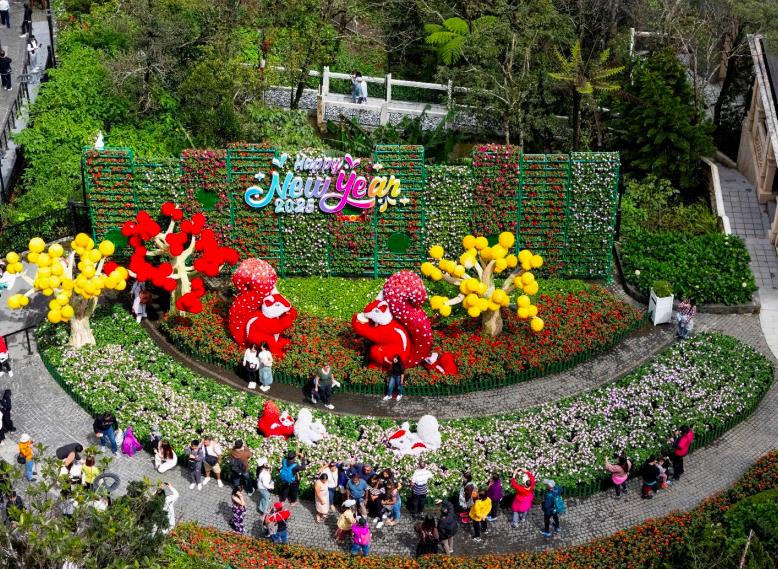 Ngay trong những ngày đầu năm mới Ất Tỵ, khu du lịch nổi tiếng nhất miền Trung SunWorld Ba Na Hills thu hút hàng chục nghìn lượt khách mỗi ngày đến du xuân. Du khách mêmẩn check in không gian muôn sắc hoa rực rỡ với gần 400 bông tulip và khám phá khônggian Tết Việt đậm chất cổ truyền.
