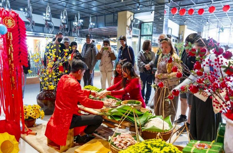 Ở đó, khách được thấy mâm cỗ Tết cổ truyền, được tự tay gói bánh chưng, xin chữ ông đồ…., những tập tục Tết vốn đã gắn bó với người dân Việt Nam tự ngàn đời…,